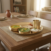 Elevate your dining experience with Amulyam , a thoughtfully curated set of 6 handcrafted kansa utensils . This set blends timeless Indian heritage with modern minimalism. Known in Ayurveda for its healing properties, kansa helps balance pH levels, improve digestion, and detoxify the body, making every meal a step toward holistic well-being.